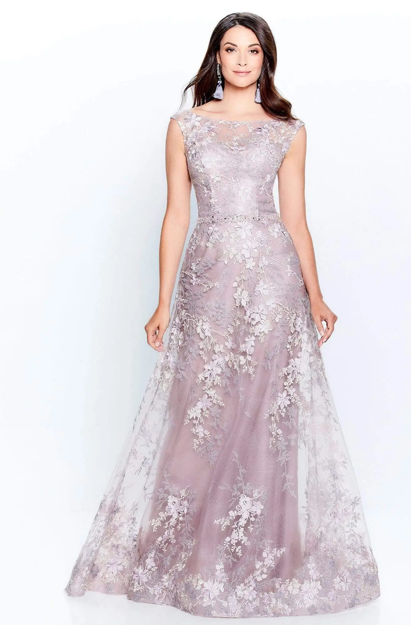 Capture the glamour as you walk on this stunning gorgeous Montage by Mon Cheri 120917W. Be beautiful in this dress as it feature illusion bateau neckline and V-back on a fitted bodice. This dress is designed with embroidery throughout and parades a long A-line silhouette made in mesh fabric. Look impeccably polished as you sweep them of their feet in this dazzling Montage by Mon Cheri masterpiece. Model is wearing Pink Topaz color.