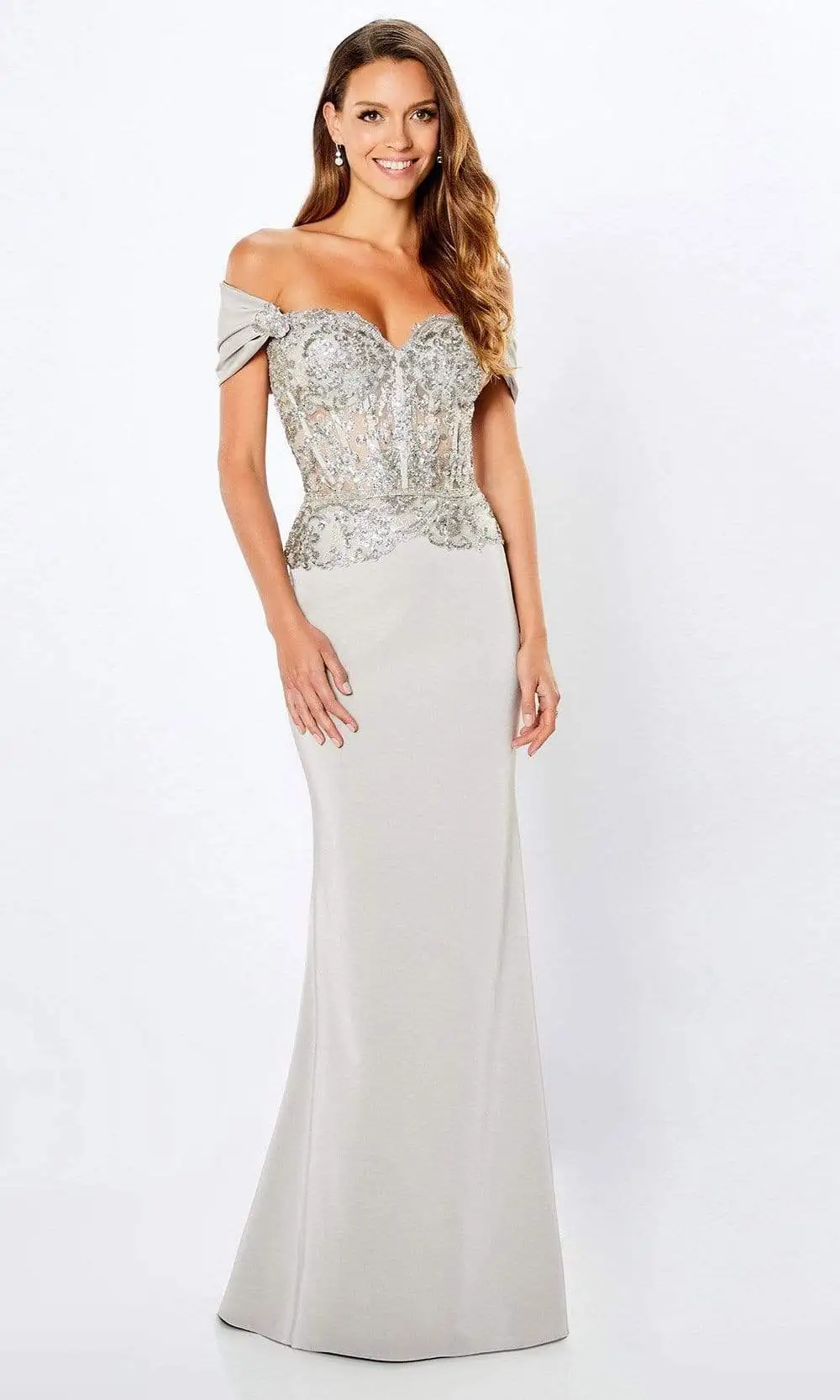 Capture the glamour as you walk on this stunning gorgeous Montage by Mon Cheri 221972. Used corset to enhance your figure in a sexy sweetheart strapless neckline. Bodice is embellished and then matches a soft crepe on the sheath silhouette. Cut in mid back and uses back zipper closure and then proceed with a sweep train finish. Be ready to mesmerize the night in this Montage by Mon Cheri.
