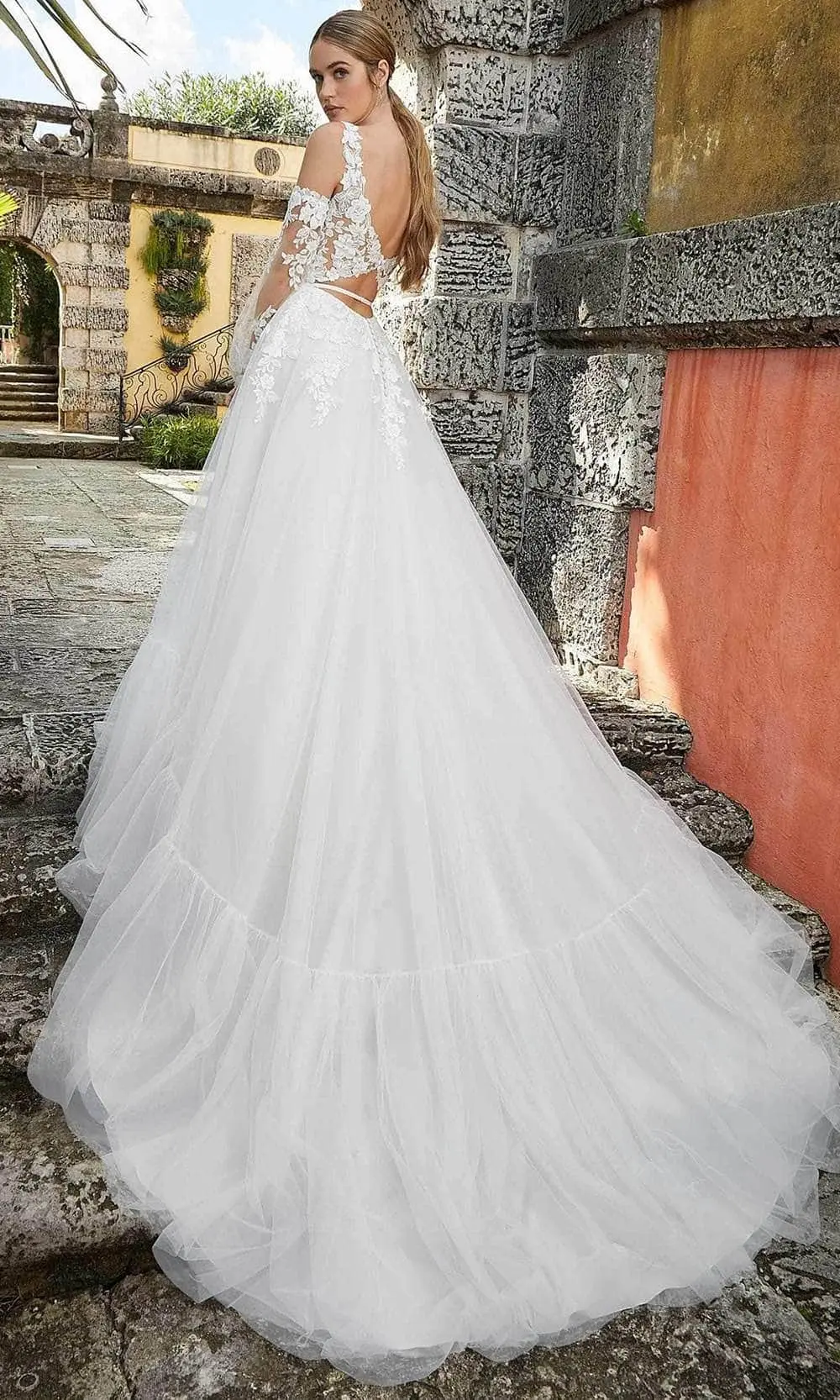 | Details: | Sleeveless, Long Sleeves, Detachable Sleeves, Embellished, Embroidery, Covered Buttons, Keyhole Back, Chapel Train, Tulle, Open-Back |