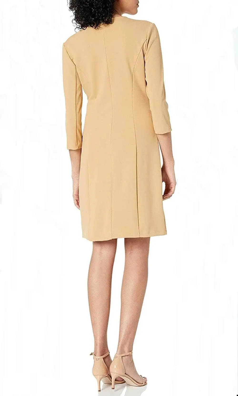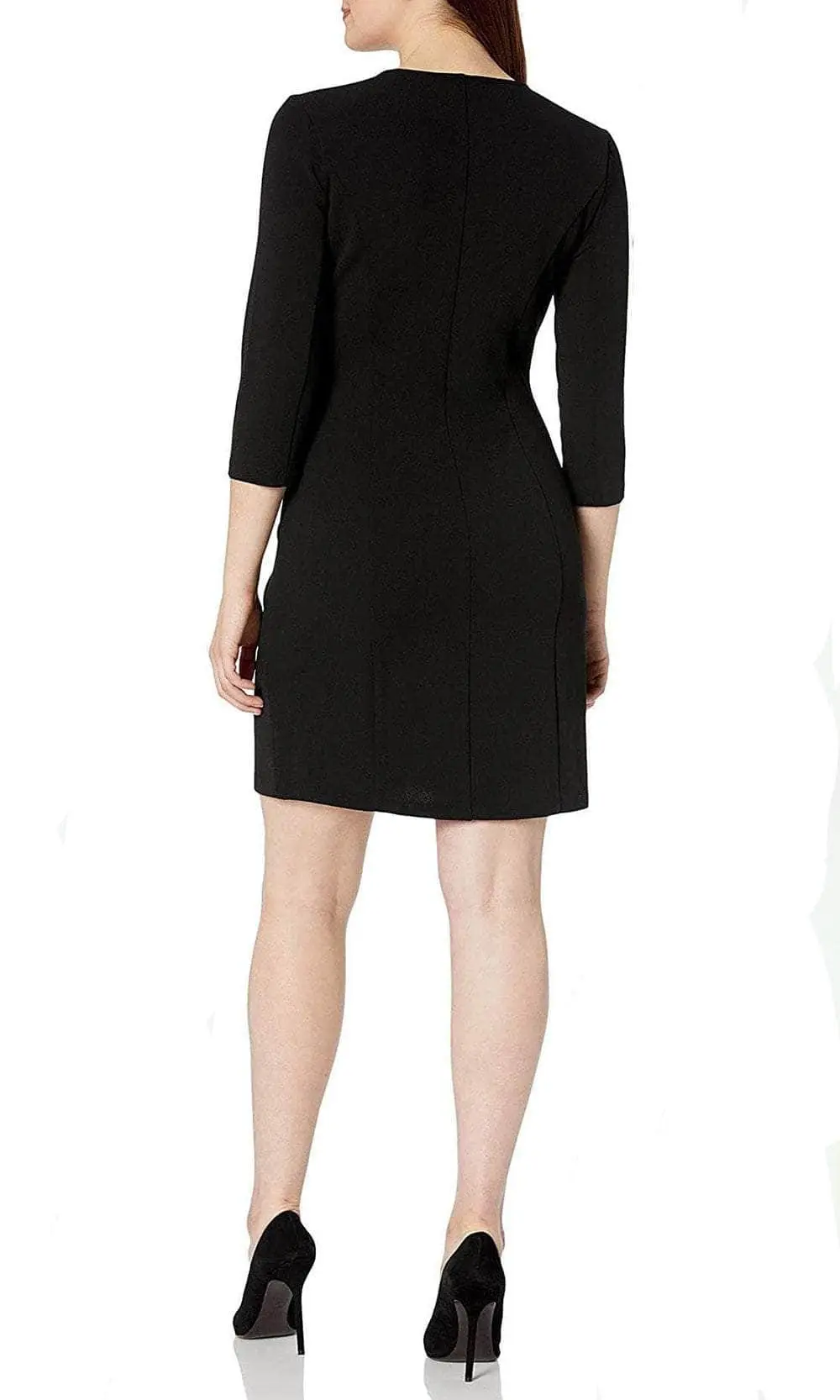 Lavish in the mesmerizing intensity of this Nanette Nanette Lepore NN9F13H141 creation. Perfectly sculpted with tailoring lines, this stunner parades a collar-line accent along with a v-neckline feature on its surplice bodice. Pleats form along the button down accent on its bodice. Crafted with a pair of quarter sleeves and a full back, the skirt cascades into a sculpted sheath silhouette that grazing the thighs. Look effortlessly feminine in this gorgeously crafted Nanette Nanette Lepore masterpiece. Couture Candy is committed to provide the very best when it comes to dresses for every occasion, and we are delighted to have Nanette Nanette Lepore on our side to aid us in delivering exquisite dresses for various occasions that are sure to make heads turn. Models are wearing the Hazelnut and Very Black colors.