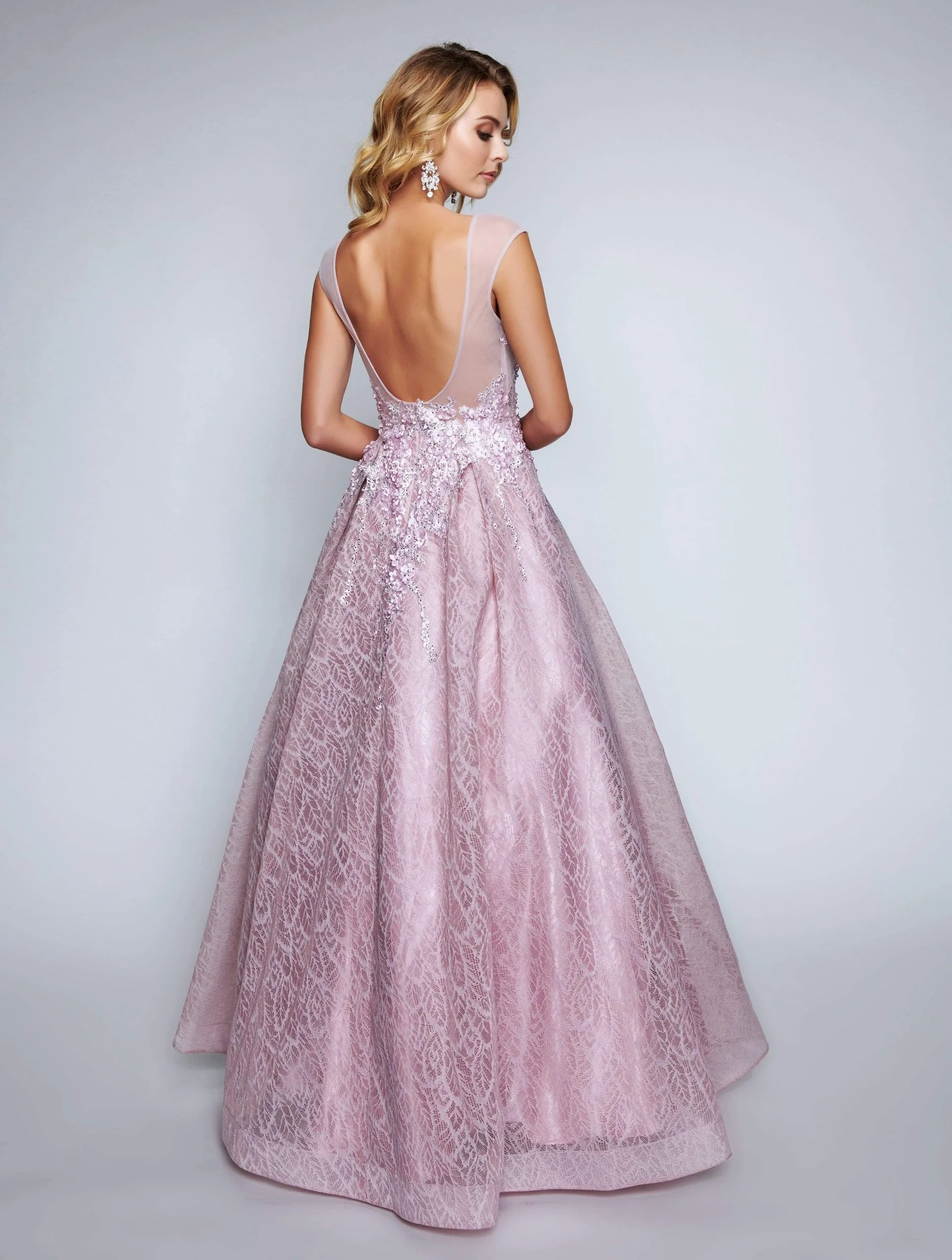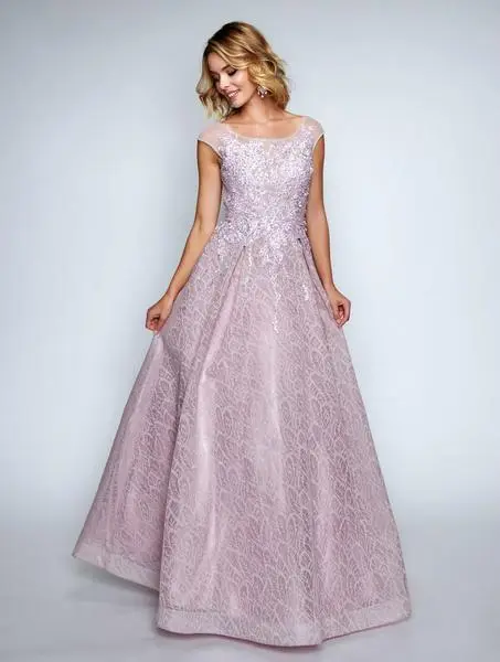 Wow the crowd as you walk into the room with this creation from Nina Canacci 3142. Shows off in a scoop neckline with sheer cap sleeves. The back has a low scoop cut and has a zipper closure. The bodice is richly decorated with floral appliques, beading, and lace appliques that extend to the pleated full length A-line skirt. Wrap up in this winning style for evening by Nina Canacci.