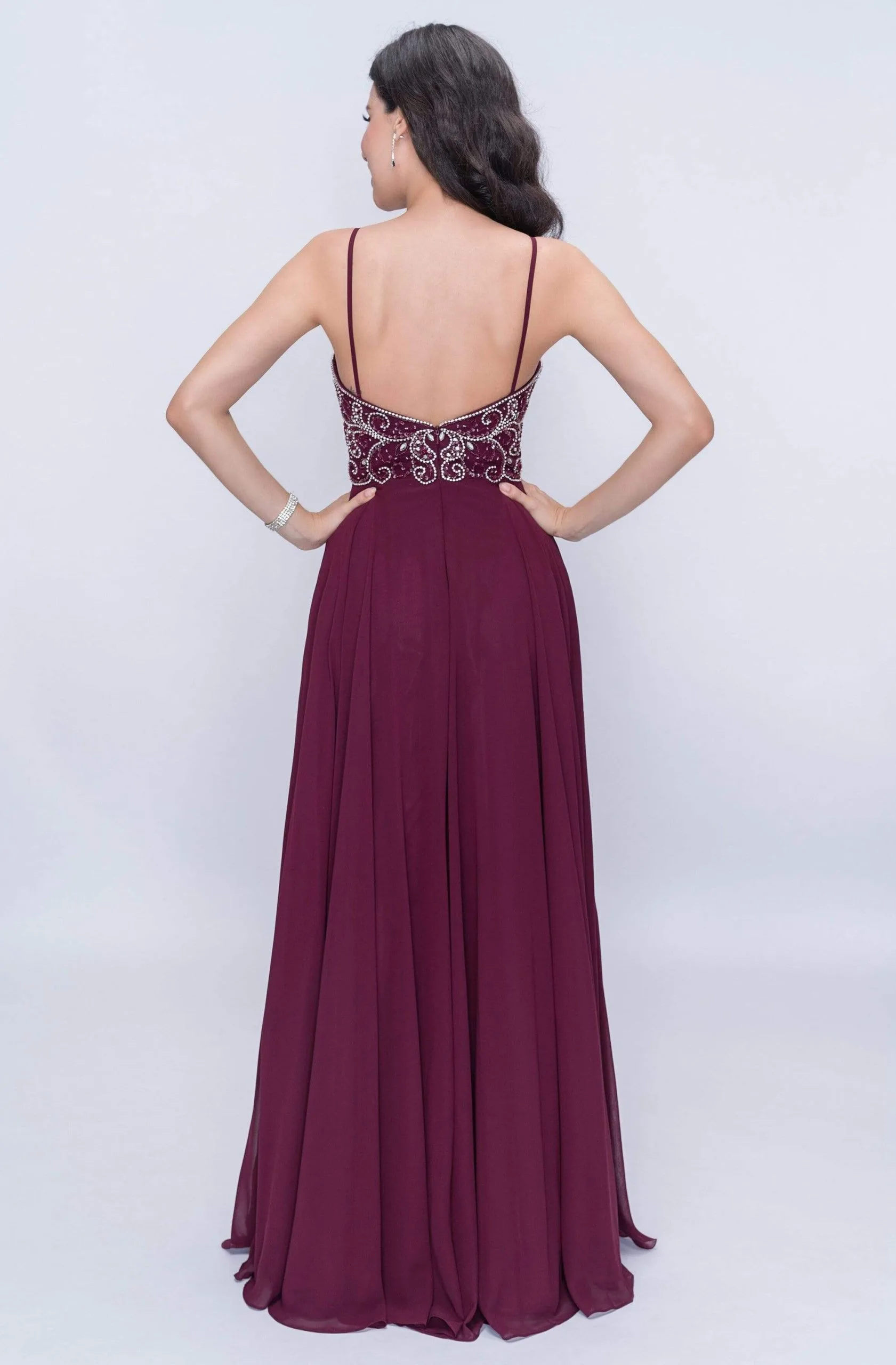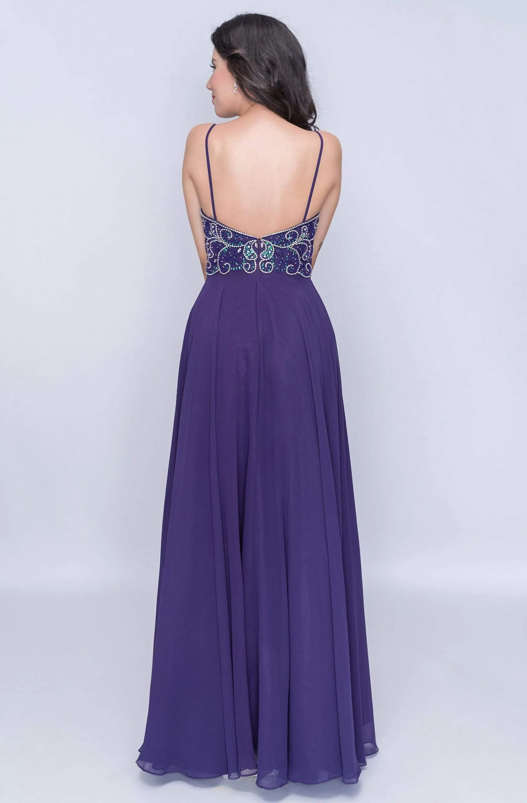 | Details: | Spaghetti Straps, Scroll Beaded Bodice, Illusion Inset, Mid-Open Back, Back Zipper Closure, Chiffon Skirt, Full Length Hem |
