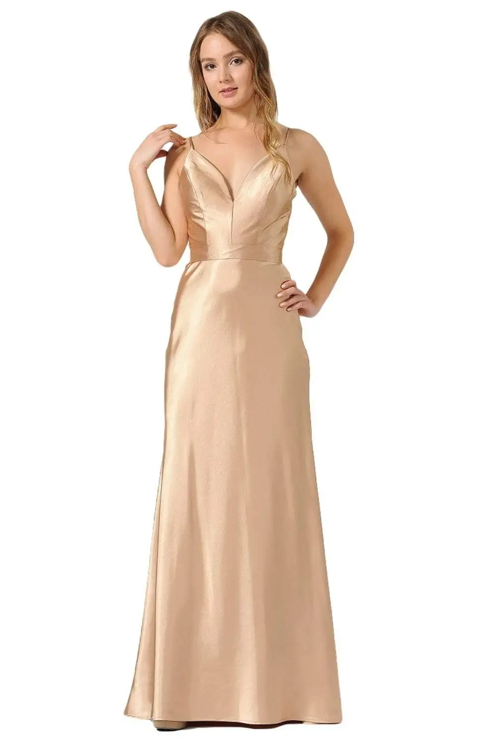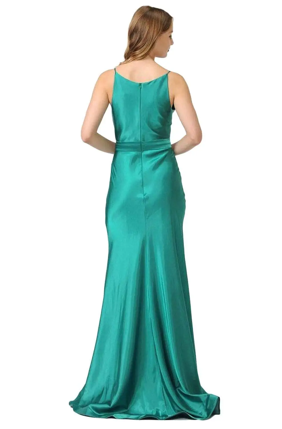 Surround yourself in pure decadence in this Poly USA 9028 creation. Sleekly defined with seams on a sleek charmeuse fabric, this stunner shows a sweetheart bodice with stringing spaghetti straps. Crafted with a full back and a matching waistband, the skirt cascades with a soft movement and finishes with a flared train. Look like a brilliant vision in this gorgeous Poly USA masterpiece.