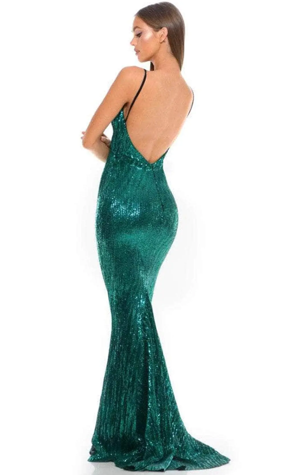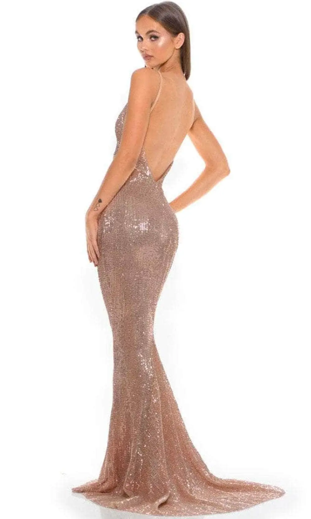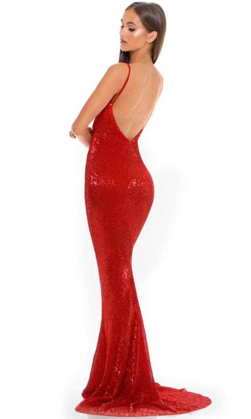 Lavish in the pure class and romance of this Portia and Scarlett GLISTEN creation. Perfectly tailored and accented with an allover embellished design, this stunner flatters with a deep v-neckline and stringed with spaghetti straps. Ornamented with a plunging open back and a zipper closure, the sheath skirt stunningly glisten as it trails into a sweeping denouement. Don a style that is mesmerizingly feminine in this inspired Portia and Scarlett masterpiece. Models are wearing the Emerald Green, Red, Rose Gold, Black and Navy colors.