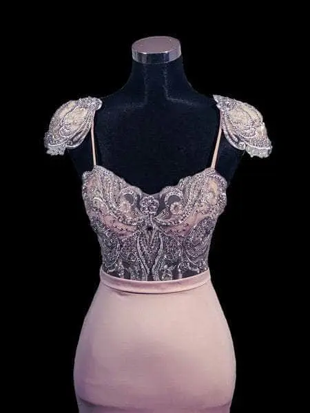 | Details: | Embroidered Bodice and Cap Sleeves, Fitted, Floor Length, Open Back, Sweep Train |