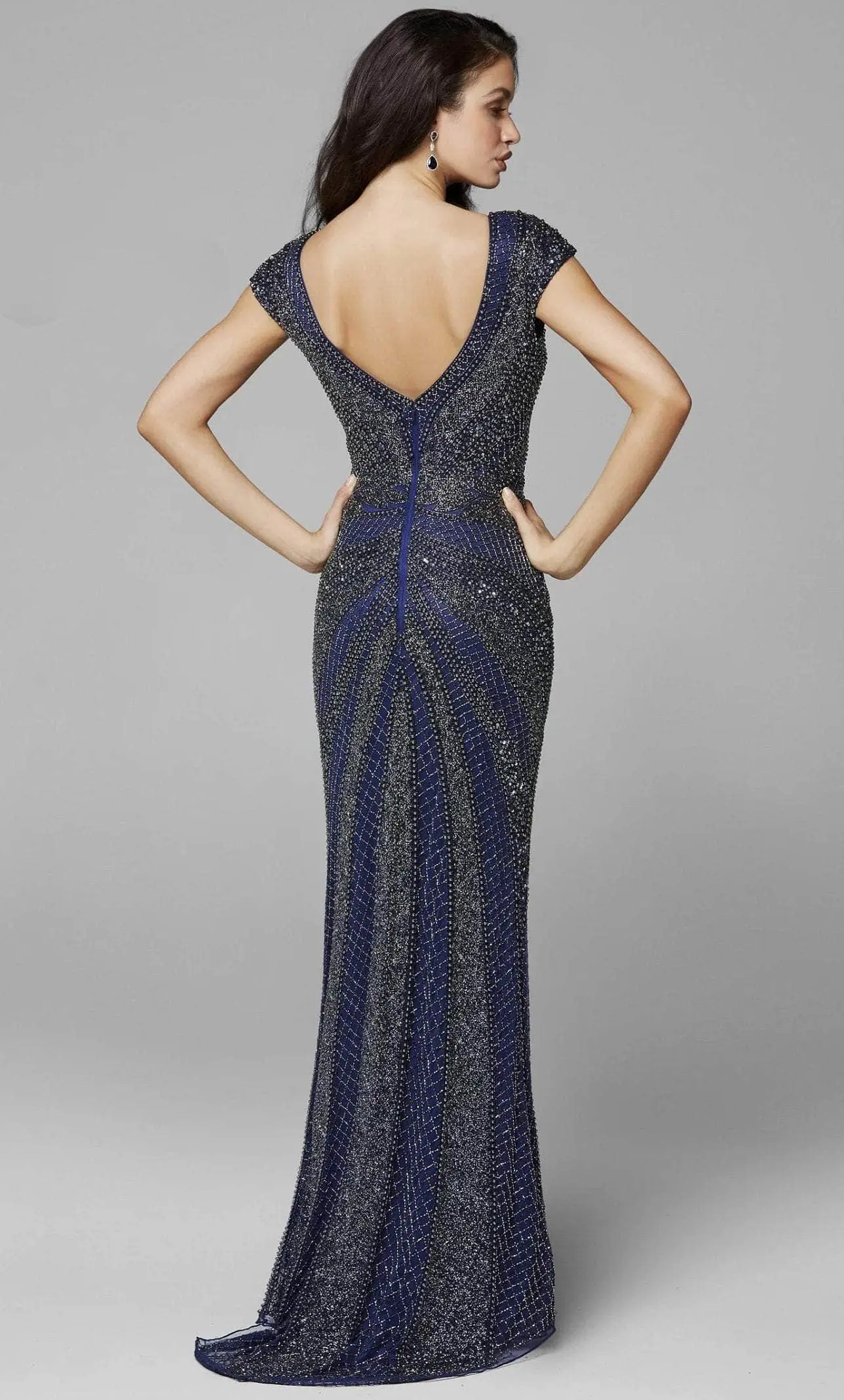 Flatter your figure with this eccentric design by Primavera Couture 3674. Appear statuesque in this glamorous sheath evening gown. An elegant V neckline is framed by cap sleeves for a seamless effect. Stunning beadwork and glitter embellish the entire dress, showing off a stately grace. Meanwhile, the back dares to show off just the right amount of skin with a V shaped back. You will undoubtedly stand out on every occasion wearing Primavera Couture 3674 Models are wearing Charcoal Gold and Midnight colors.