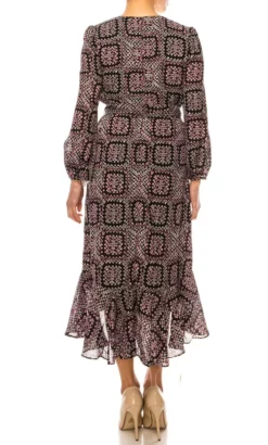Maison Tara 95611M – Faux Wrap Long Sleeve Dress