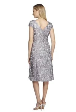 Alexia Designs – 4090 Floral Appliqued Shirred Chiffon Dress