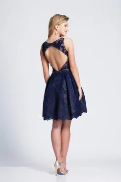 Dancing Queen Bridal – 9826 Gilded Lace Illusion A-Line Prom Dress