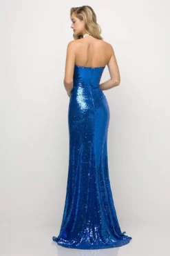 Cinderella Divine – Crisscrossed Strapless Applique Ornate Long Gown