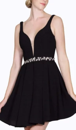 Cinderella Divine – Embellished Deep V-neck Short A-line Dress