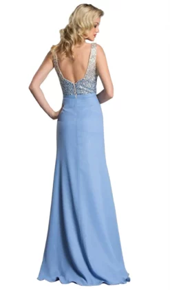 Adrianna Papell – Bejeweled Closed Neck Chiffon Gown 231M70230