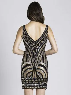 Lara Dresses – 33581 V-Neck Sequined Print Short Dress