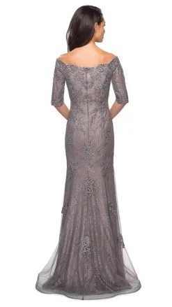La Femme – 24866SC Elbow Length Sleeve Embroidered Sheer Overlay Evening Gown