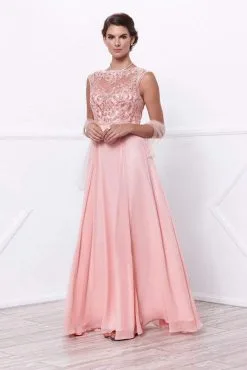 Nox Anabel 5151 Embroidered Bateau Neck A-Line Gown