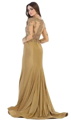 May Queen – Plunging V-Neck Pleated A-Line Dress MQ1635 – 1 Pc Gold In Size 16 Available