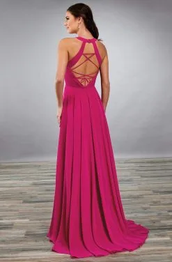 May Queen – MQ1594 Halter Neck Strappy Back Satin A-Line Gown