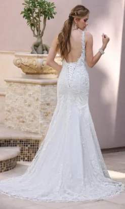 Da Vinci Bridal – 50293 Jewel Lacey Keyhole Back Sheath Gown