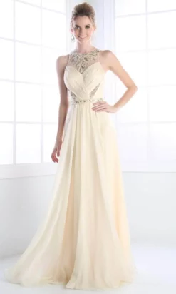 Cinderella Divine JC3373 – Crystal Embellished Pleated Long Dress