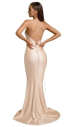 Portia And Scarlett – PS6395 Plunging Neck String Back Evening Dress
