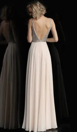 JVN By Jovani – JVN62409 Embellished Deep V-neck Long A-line Dress
