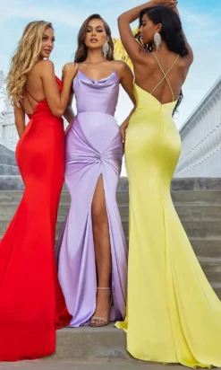 Portia And Scarlett – PS22385 Cowl Neckline Hight Slit Fitted Gown