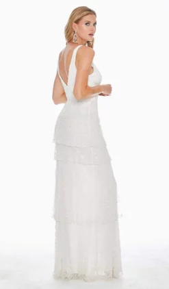 Ashley Lauren Bridal – 1169 Pearl Beaded Deep V-neck A-line Dress