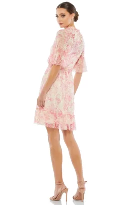 Adrianna Papell AP1D104268 – Long Sleeve Split Neck Knee-Length Dress