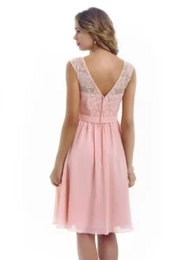 Alexia Designs – 4210 Lace V-neck Ruched Chiffon A-line Dress