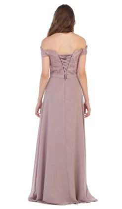 May Queen – MQ1596 Allover Lace Off Shoulder Lace Up Back Mermaid Gown