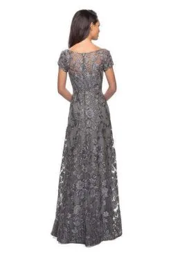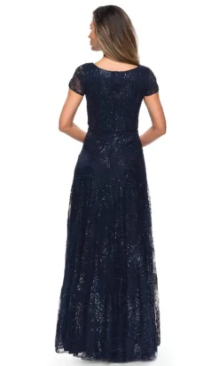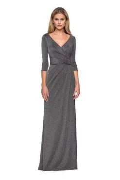 La Femme – 26419 Plunging V-neck Glitter Jersey Sheath Dress