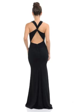 Lenovia – 5186 Sequined Pattern Plunging Halter Evening Gown