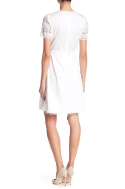 Taylor – 9862M Knee Length Puff Sleeve Illusion Embroidered Dress