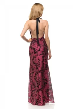 Lenovia – 5186 Sequined Pattern Plunging Halter Evening Gown