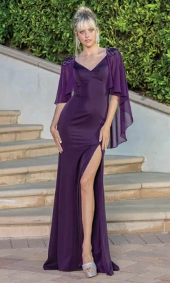 Dancing Queen Illusion Cap Sleeve Pleated V-Neck Chiffon Evening Dress 9182