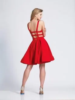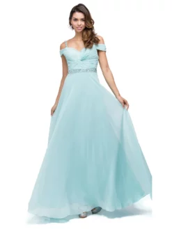 Dancing Queen 9718 Ruched Bejeweled Cold Shoulder Red Chiffon Dress