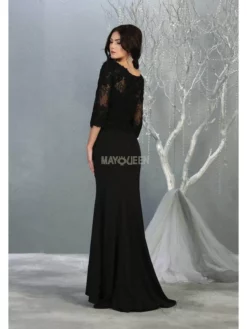 May Queen – RQ7603 Embroidered Long Sleeve Bateau Trumpet Dress