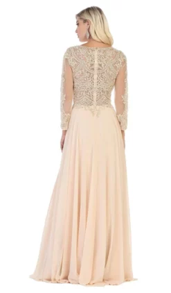 May Queen – RQ7603 Embroidered Long Sleeve Bateau Trumpet Dress