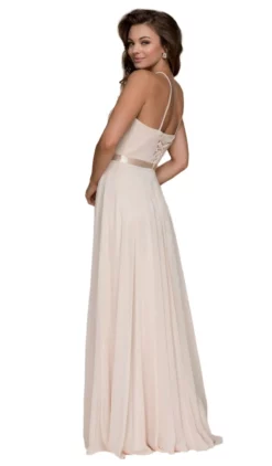 Poly USA – 7454 Sleeveless Rhinestone Lace Bodice Chiffon Gown