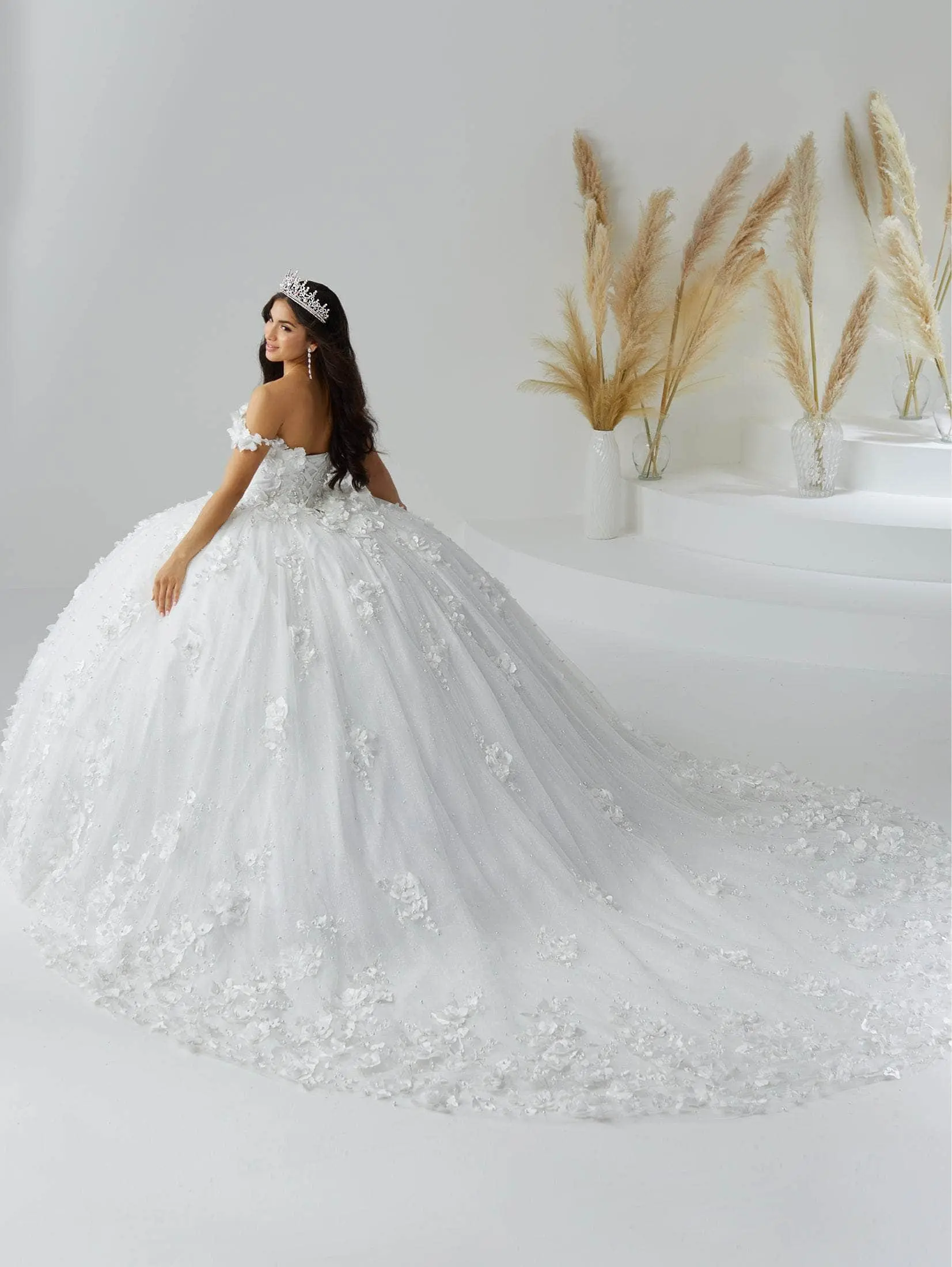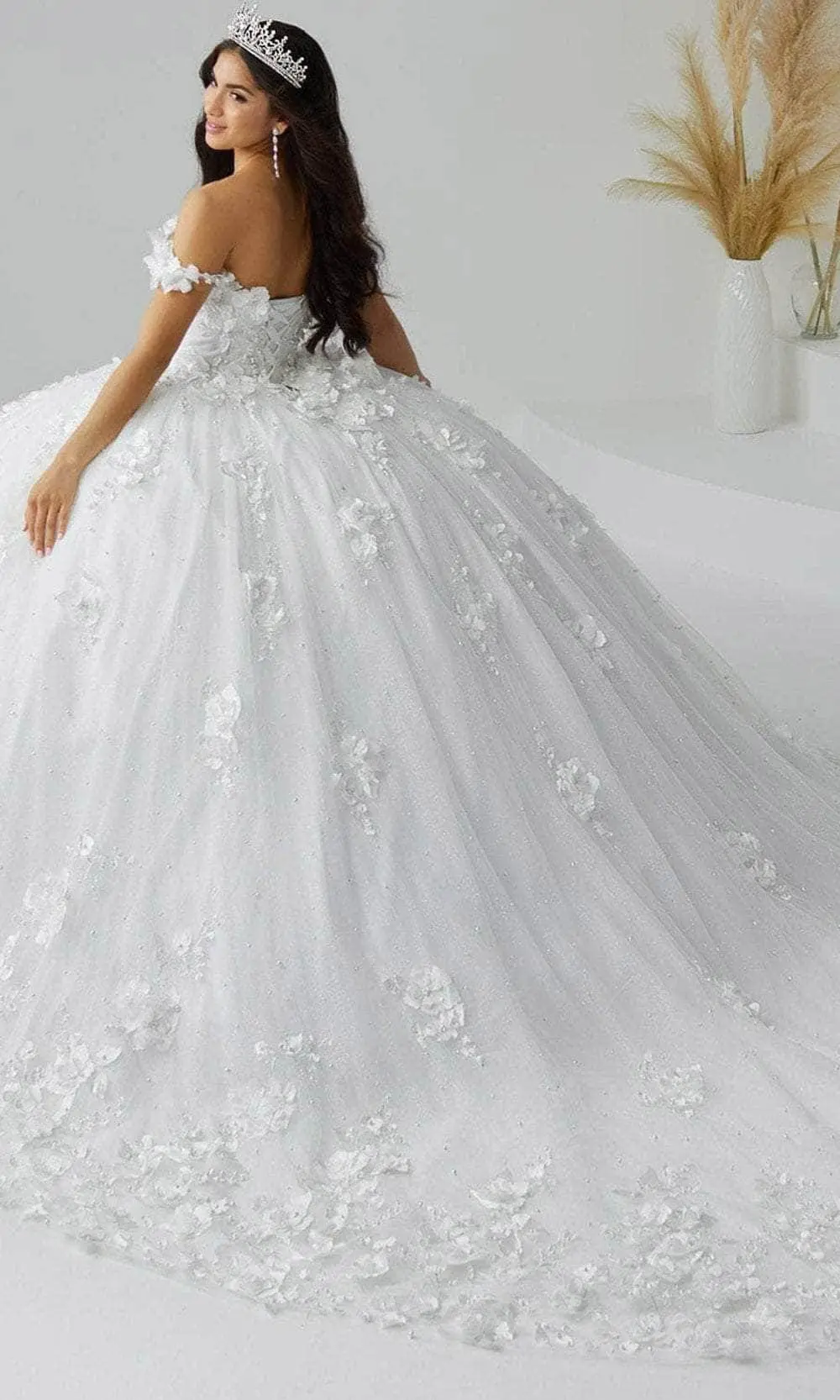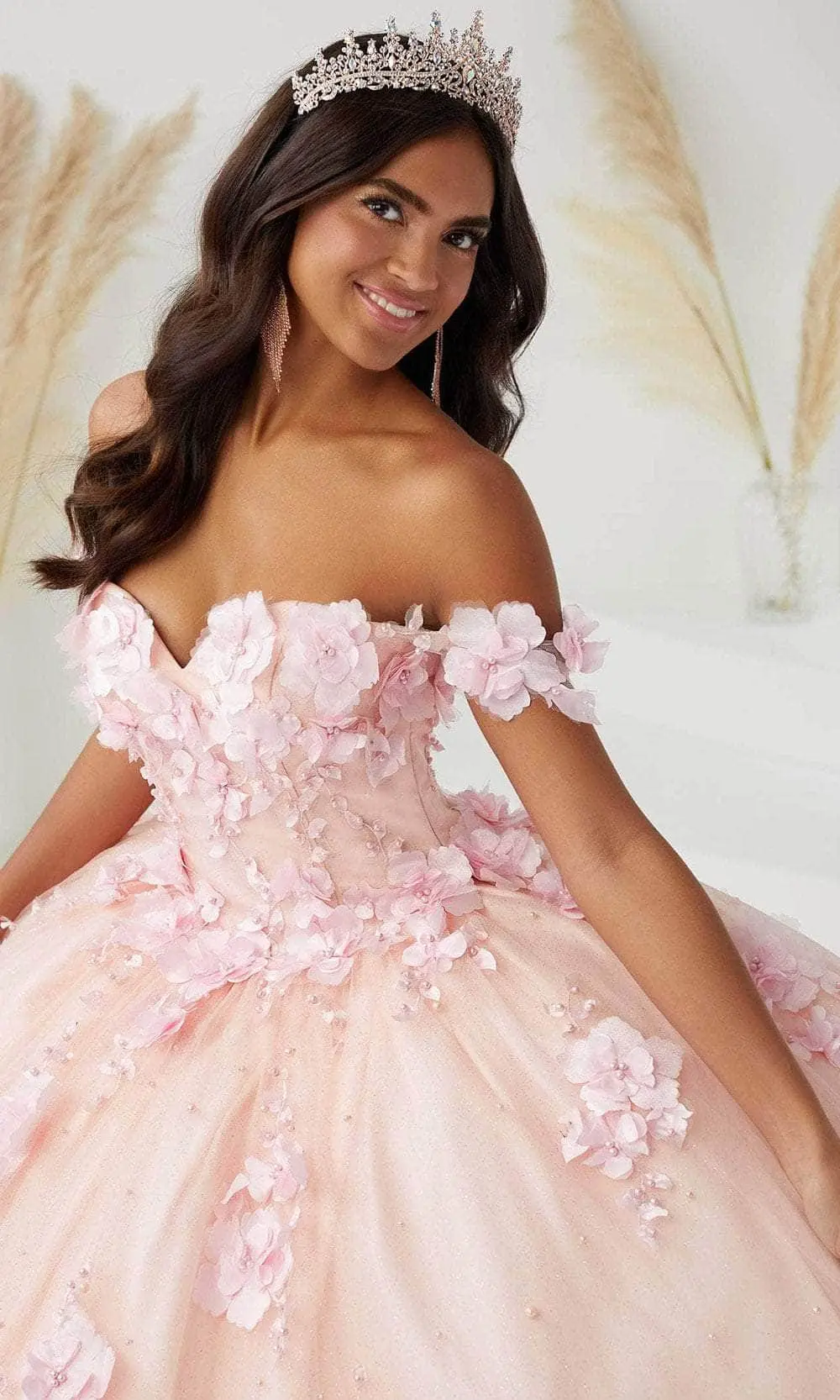 Resonate a sophisticated style at your fabulous soiree in this sophisticated ballgown by House of Wu 26024. Featuring an off shoulder and sweetheart neckline on a fitted bodice defined in princess seam. Floral appliques trails from the neckline down to the hemline. The back secures a perfect fit through its lace up style closure plus a concealed zipper. The skirt flaunts a tulle overlay as it reveals a voluminous ballgown with a chapel train finish. Adorn yourself in an utterly feminine style as you turn heads effortlessly with this House of Wu creation. Models are wearing Blush Pink, Ivory, Lilac, and Sky Blue colors.