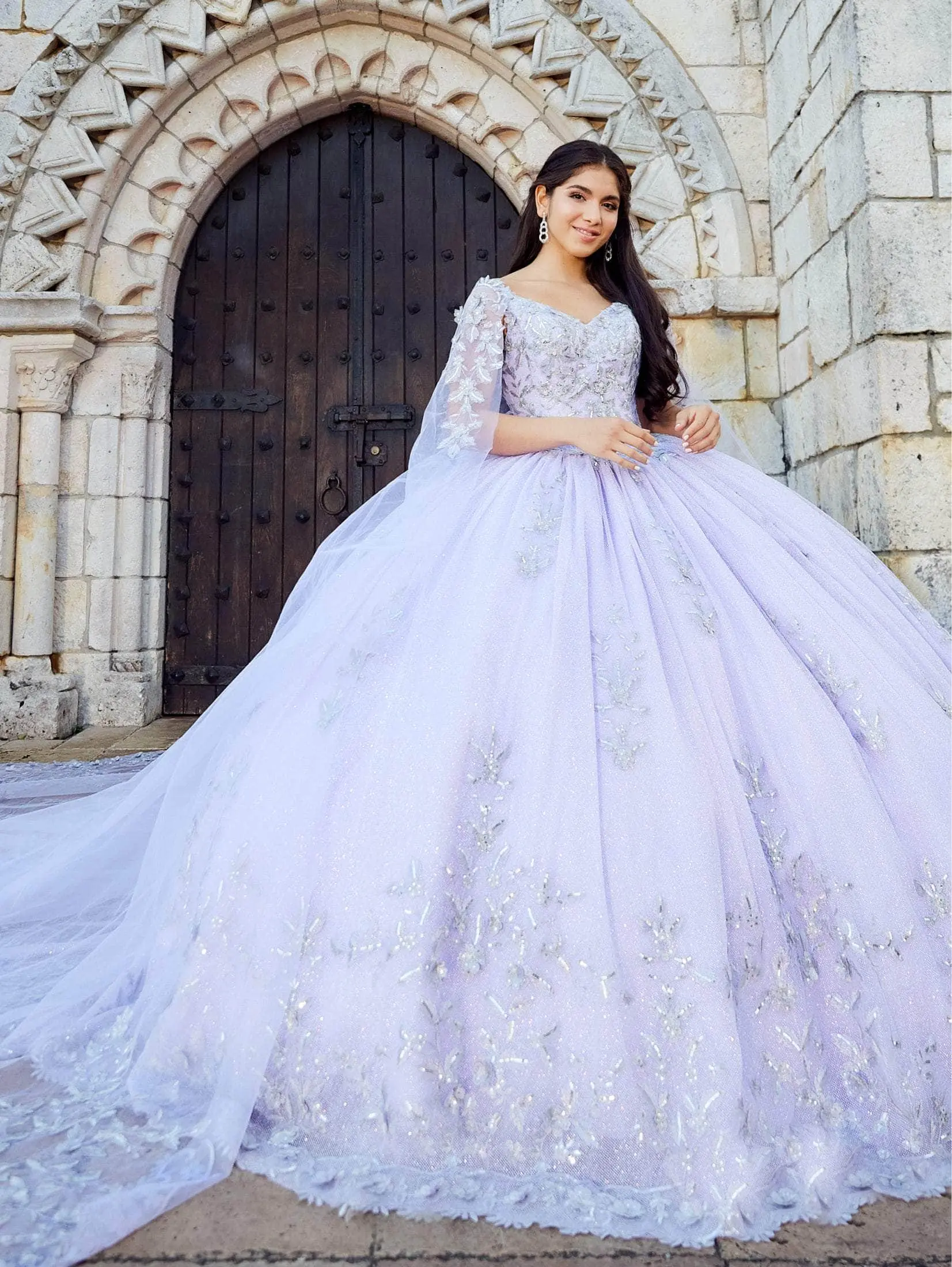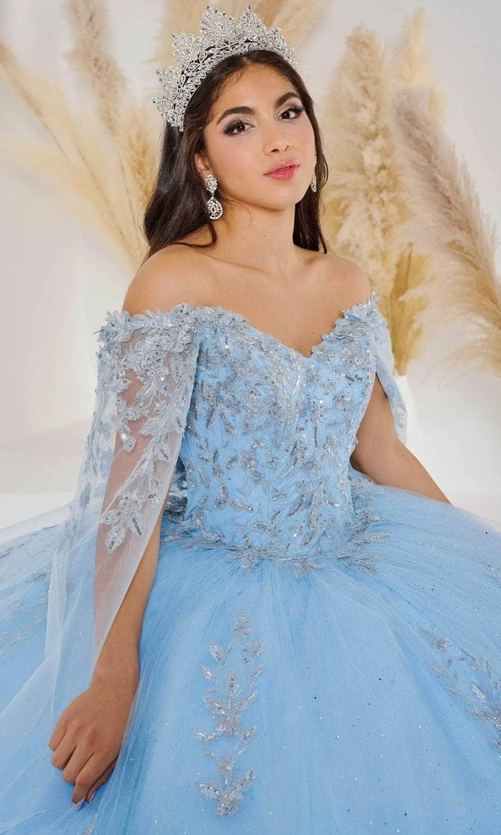 Get ready to flaunt your flamboyant side in this ballgown by House of Wu 26040. This sleeveless gown with lace applique includes an attractive basque waistline, a V-neckline, a fitted bodice with a lace up back closure for the optimum fit. A flowing angel sheer cap matches the voluminous ballgown as it cascades to a glorious chapel train finish. When you walk into the ball with this House of Wu masterpiece, everyone will be at a loss for words. Models are wearing Lilac/Silver, and Sky/Silver colors.