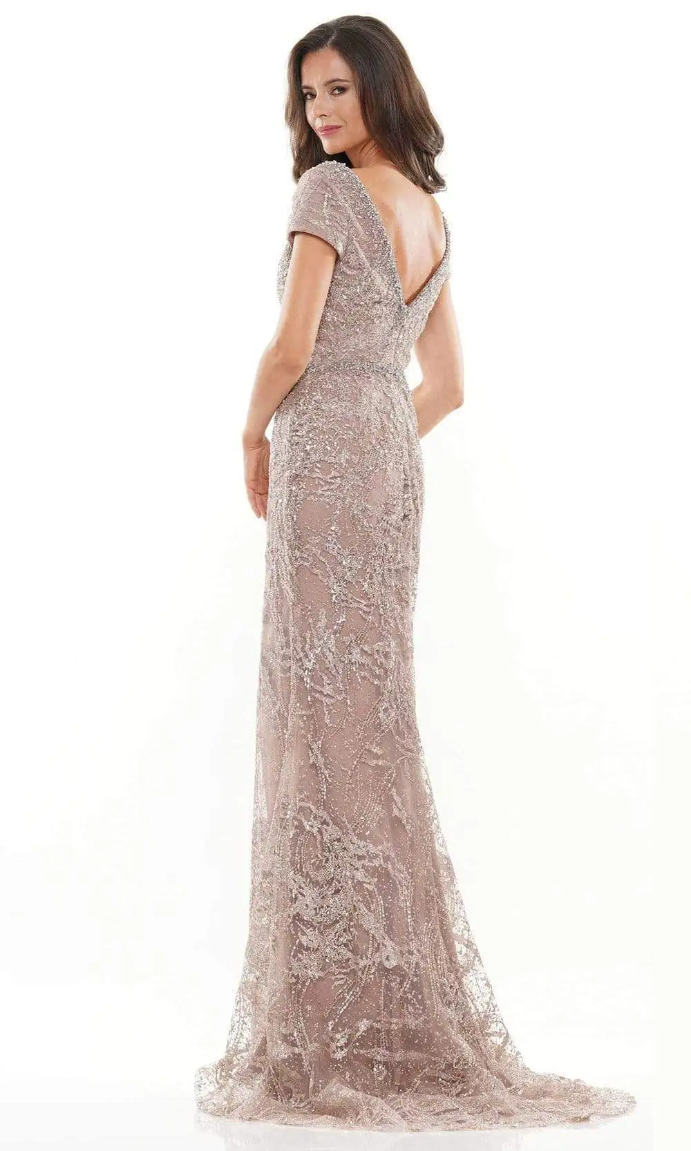 | Details: | Short sleeves, Beads, Glitters, Fitted bodice, V back, Back zipper, Floor length, Sweep train |