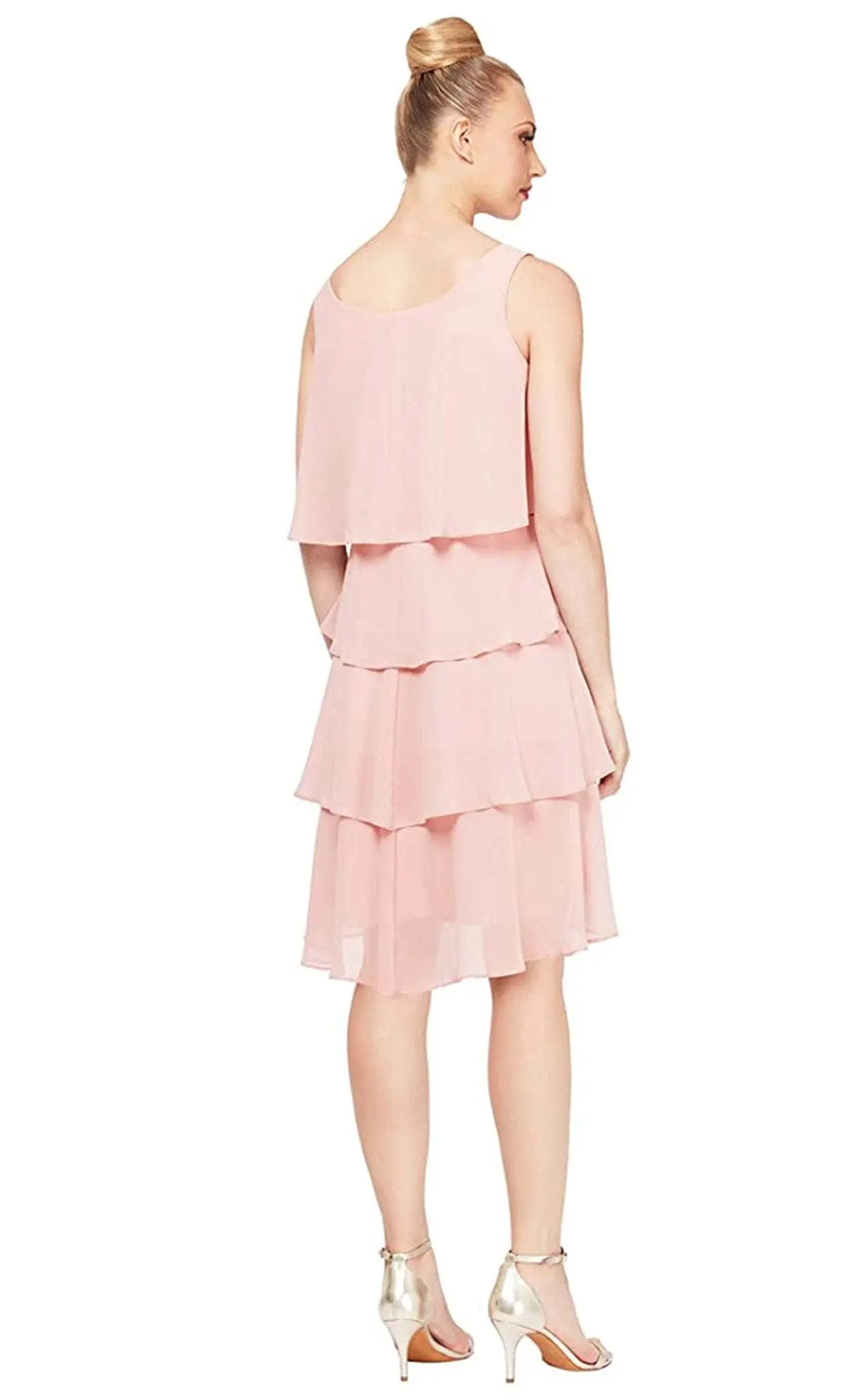 Exude elegance on your special occasion in this SLNY SL112296 cocktail dress. Tier detailing beautified the entire chiffon dress which creates an elegant effect. The sleeveless bodice flaunts a scoop neckline accented with beadwork and has a mid-open back. For an exquisite touch, this stunner has a removable open jacket. The A-line skirt ends at a short length hemline. This amazing creation by SLNY SL112296 parades the elegant and fashionable sense of style. Model is wearing the Faded Rose color.