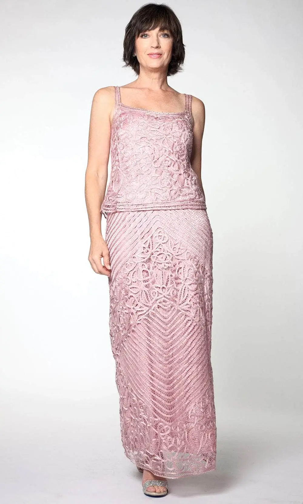 This elegant three-piece evening dress features hand crochet pattern, with gentle slim designed to flatter a woman’s curves. Top and dress lined with soft silk for extra comfort, and unlined jacket highlight Soulmates signature hand-embroidered beading matching with A-line skirt.