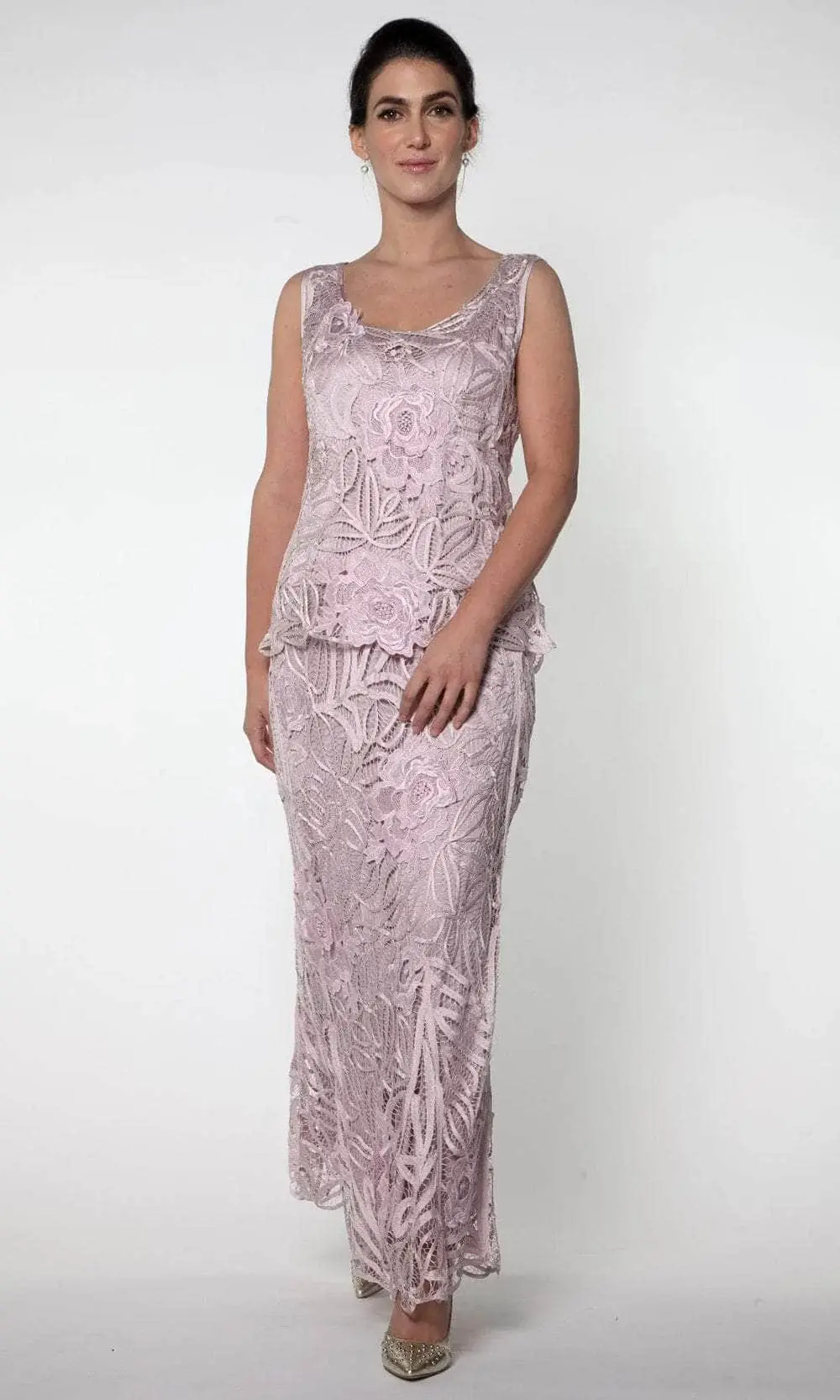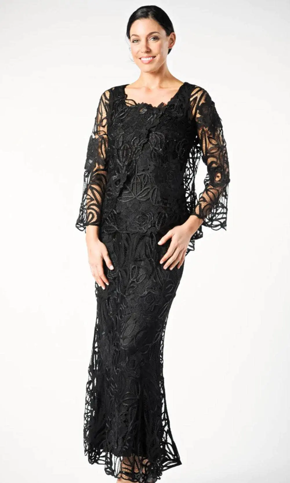 Dazzle the room in Soulmates’ signature approach to glamour with this Peony Lace three-piece dress enhanced with Embroidery Appliqués. The jacket layers beautifully over the tank to create an intricate neckline and shorter sleeves to show off your jewelry. The back of the jacket is slightly longer to offers subtle lightweight coverage and the slightly flared skirt creates fabulous movement when you walk.