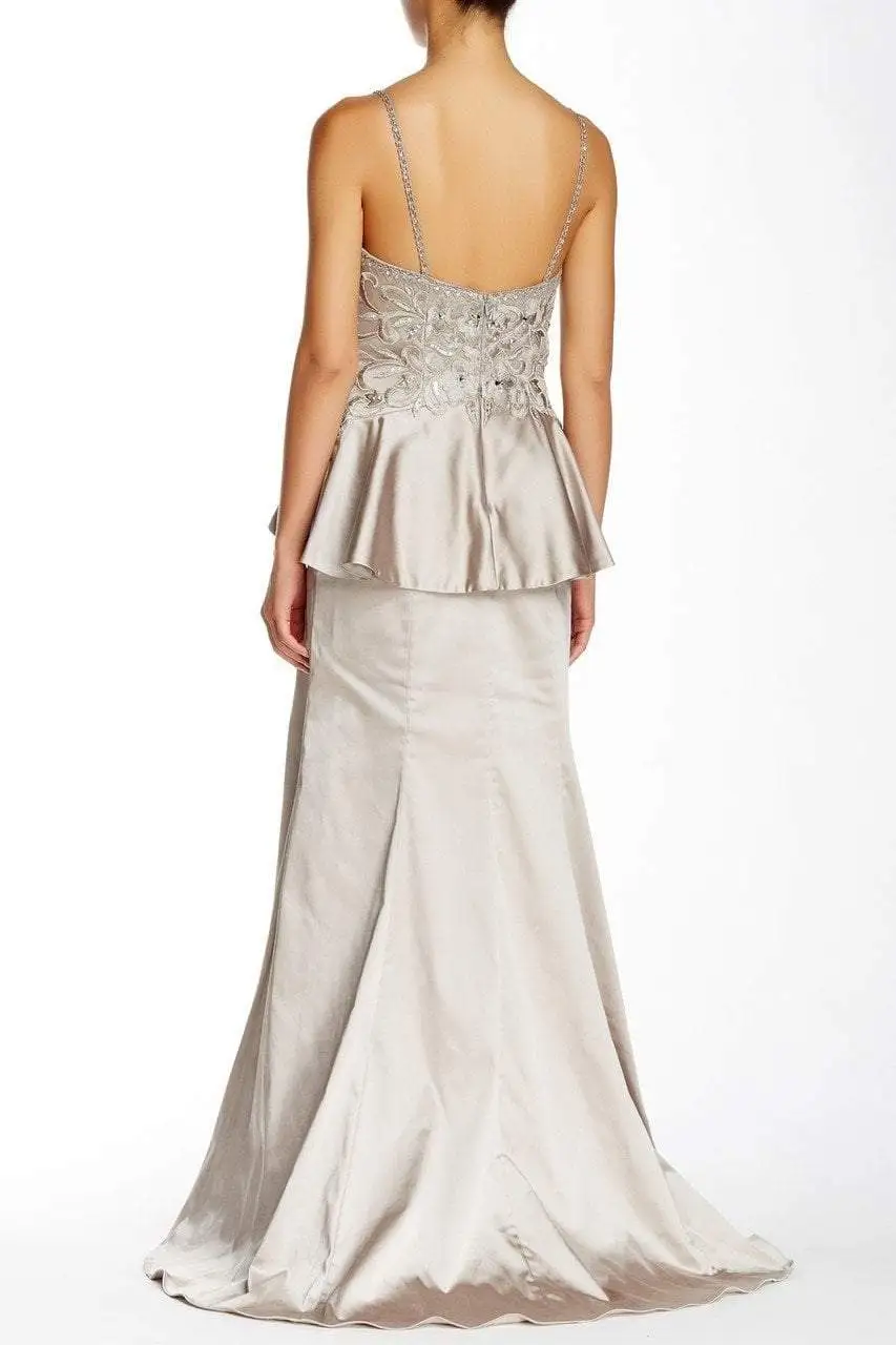 | Details: | Slim Straps, Embroidered Lace, Sequins, Satin, Peplum Detail, Full-Length |