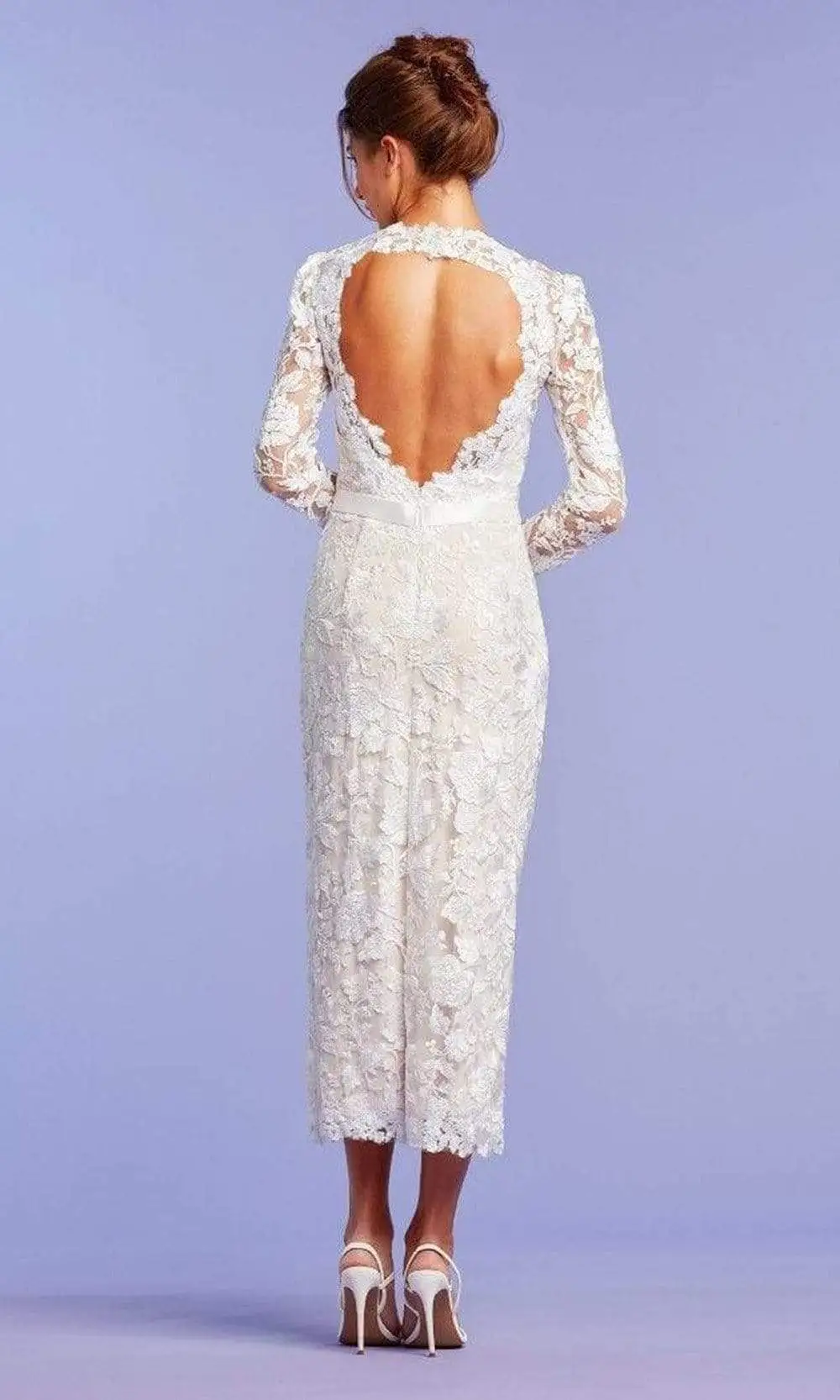 | Details: | Embroidered, Satin Waistband, Cutout Back, Long Sleeves, Zipper Closure, Tea Length Hem |