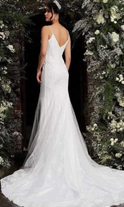 Jovani Bridal – JB07266 Lace Plunging Off Shoulder Trumpet Bridal Gown