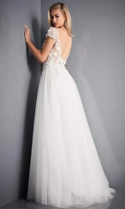 JVN By Jovani – Long Lace Bodice A-Line Dress JVN62568SC – 1 Pc Off White In Size 10 Available