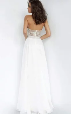 Jovani – Strapless Ruche-Ornate A-Line Dress 00457SC – 1 Pc Off-White In Size 12 Available